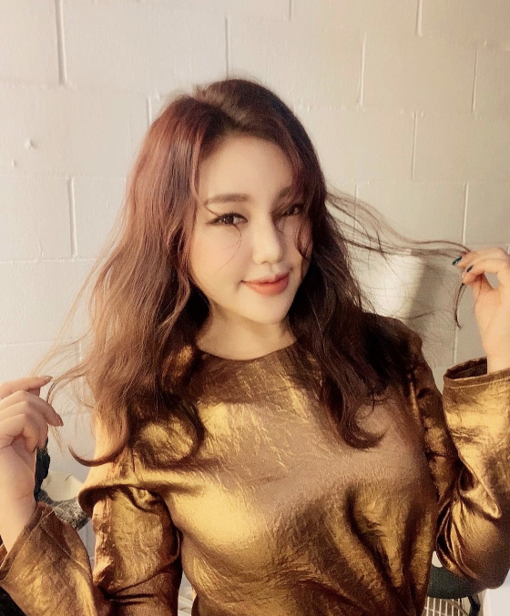 사진 속 송가인은 브라운 계열 메이크업과 머리 색깔로 색다른 모습을 연출했다. 송가인의 실크 소재 골드브라운 블라우스는 우아한 매력을 더했다.