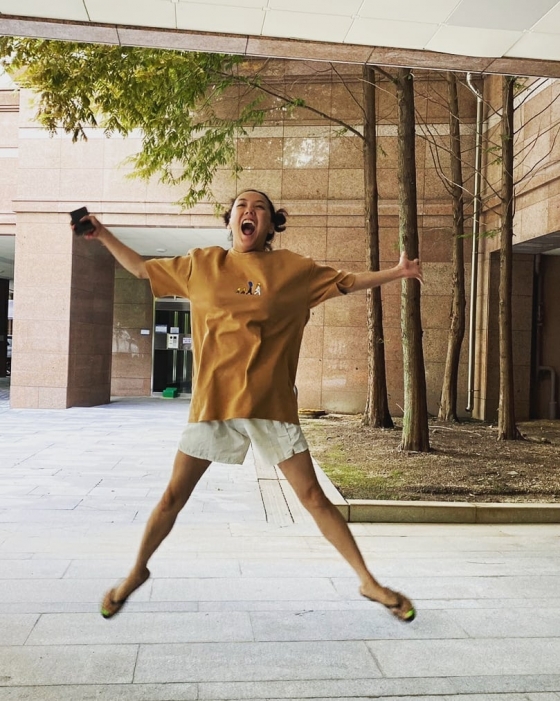 공개된 사진 속에는 고은아가 캐주얼한 차림으로 신나게 뛰고 있는 모습이 담겨 있었다.