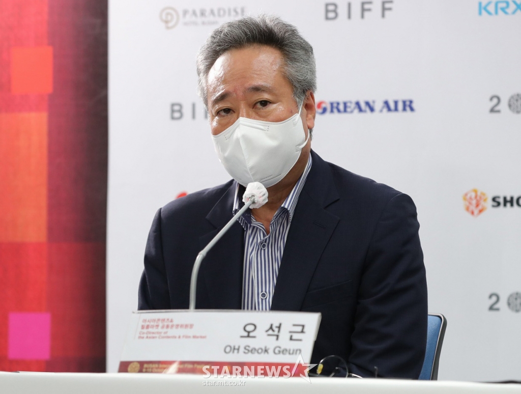 오석근 아시아콘텐츠 필름마켓 공동운영위원장이 15일 오후 온라인으로 진행된 제26회 부산국제영화제(BIFF) 개최 기자회견에서 발언을 하고 있다.