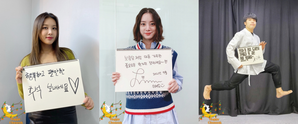 유빈, 우혜림, 신민철 르엔터테인먼트 소속 아티스트들이 추석 연휴를 맞아 훈훈한 추석 인사를 전했다.