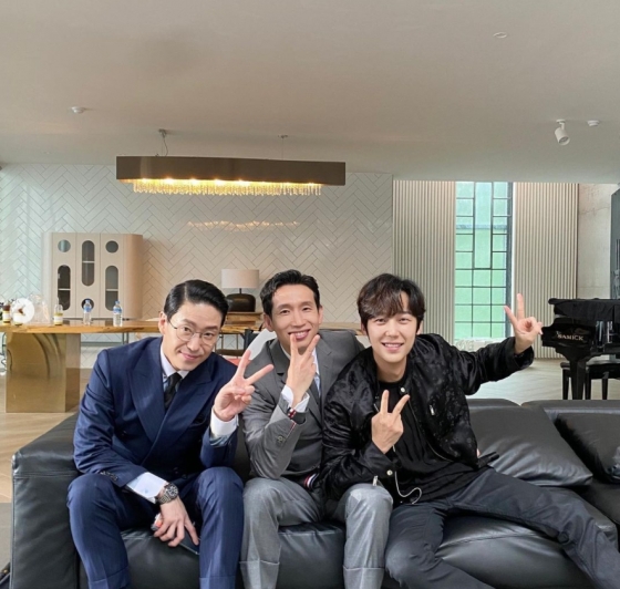 공개된 사진에는 '펜트하우스'에서 연기 호흡을 맞춘 봉태규와 엄기준, 윤종훈이 나란히 소파에 앉아 카메라를 향해 포즈를 취하고 있다. 세 사람 모두 미소를 짓고 손가락으로 브이(V)를 그리며 화기애애한 분위기를 연출하고 있다.