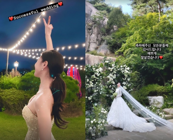 김윤지는 지난 26일 자신의 SNS를 통해 "축하해주신 모든 분들께 감사드립니다. 예쁘게 잘 살겠습니다", "Succesful Wedding(성공적인 결혼식)"이라는 글을 게재했다.