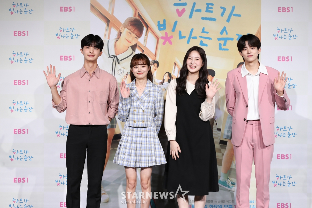 배우 오재웅, 최지수, 신소현, 정수빈이 27일 오후 온라인으로 진행된 EBS 청소년 드라마 '하트가 빛나는 순간' 기자간담회에 참석해 포즈를 취하고 있다.