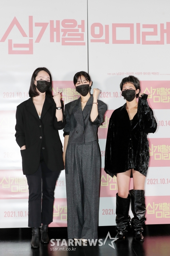 연예방송'십개월의 미래' 파이팅![★포토]발행 : 2021.10.01 ・ 16:04김창현 기자남궁선 감독, 배우 최성은, 유이든이 1일 오후 서울 광진구 자양동 롯데시네마 건대입구점에서 열린 영화 '십개월의 미래' 언론시사회에 참석해 포즈를 취하고 있다.'십개월의 미래'는 정신 차려 보니 임신 10주, 인생 최대 혼돈과 맞닥뜨린 29살 프로그램 개발자 '미래'의 이야기를 담은 남궁선 감독의 데뷔작이다. 오는 14일 개봉. 2021.10.01<저작권자 © 스타뉴스, 무단전재 및 재배포 금지>십개월의미래추천 기사김창현 기자기자홈좋아요 연예-방송의 인기 급상승 뉴스연예-방송의 최신 뉴스