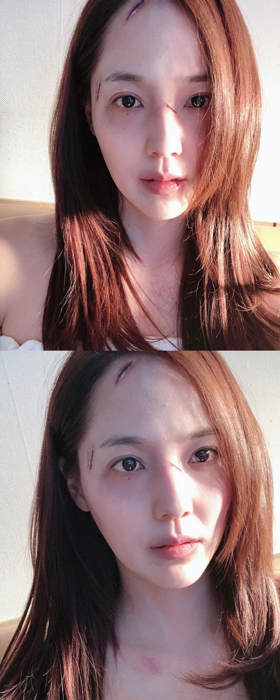 배우 오윤희가 얼굴에 상처 분장이 가득한 모습을 공개했다.