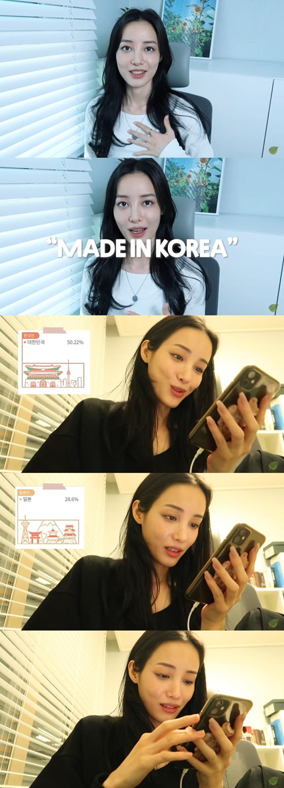 그녀는 "50.22% 한국인. 저는 찐 한국인입니다"라며 "28.6%의 일본인, 18.4%의 중국인. 2.78%의 몽골인으로 구성된. 동아시아인 의 유전자로 이루어져 있습니다. 아시아 몰빵입니다"라고 밝혔다.