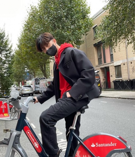 박서준은 12일 자신의 인스타그램에 통해 자전거 이모티콘과 사진을 게재했다. 공개 된 사진 속 박서준은 영국의 한 거리에서 자전거를 타던 중 카메라를 응시하고 있다. 길에서 자전거를 타는 사진임에도 화보 같은 모습이다.