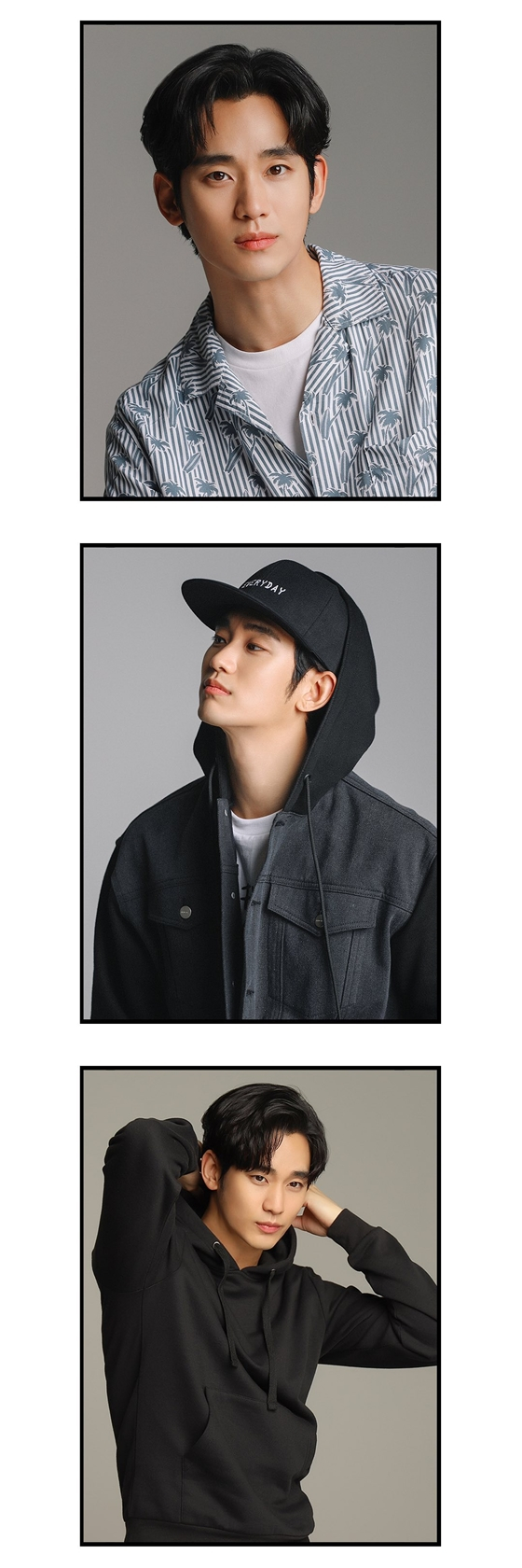 공개된 사진에는 김수현의 '잘생김'이 담긴 모습을 확인할 수 있다. 모자를 쓴 자태부터 후드티셔츠, 셔츠를 각각 입은 모습에서는 '훈남' '잘생김'의 정석을 보여준 김수현이다.