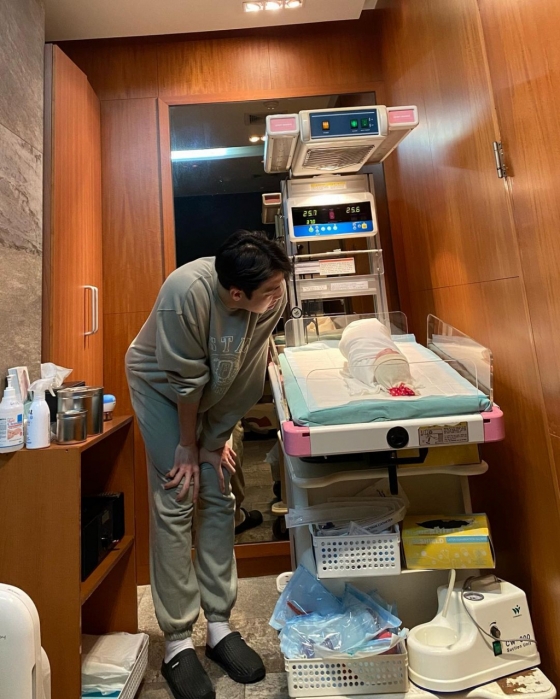 함께 공개한 사진 속에는 갓 태어난 제니아 포대기에 쌓여 잠들어있다. 아빠 정창영은 둘째 딸을 사랑스러운 시선으로 바라보며 훈훈하게 만들었다.