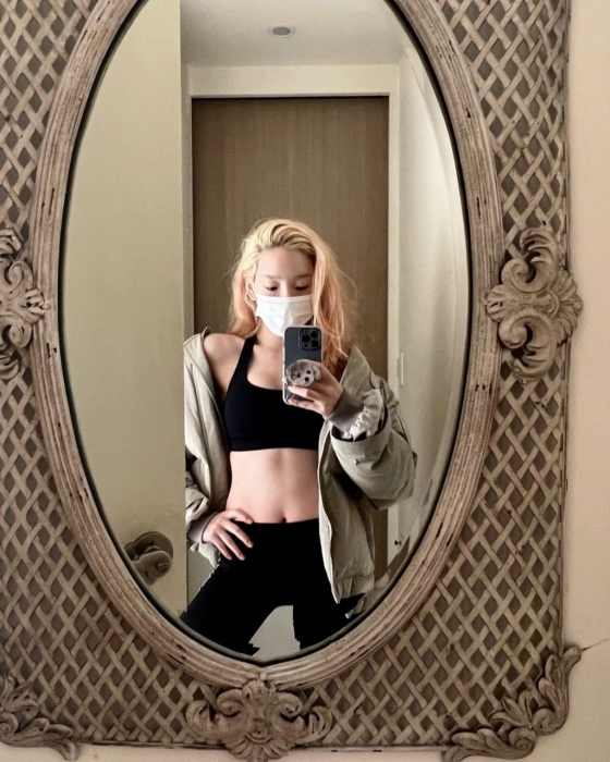 공개된 사진 속 태연은 운동복 차림으로 거울 셀카를 촬영하는 모습. 그는 복근이 생기는 과정을 공개하며 보는 이들의 운동 욕구를 자극했다.