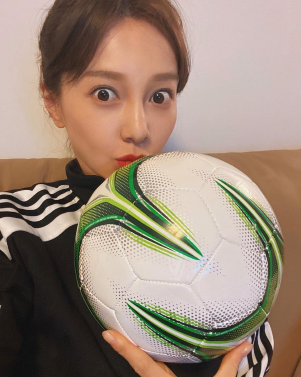 공개된 사진에는 아유미가 축구공을 들고 깜찍한 표정을 짓고 있는 모습이 담겼다. 이에 아유미와 한 팀이 된 채리나는 댓글로 "바지만 똑바로 입자"라고 해 웃음을 안겼다.