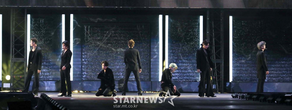 그룹 방탄소년단(BTS)이 24일 오후 온라인으로 진행된 'BTS 퍼미션 투 댄스 온 스테이지'(BTS PERMISSION TO DANCE ON STAGE)' 콘서트에서 화려한 무대를 선보이고 있다.
