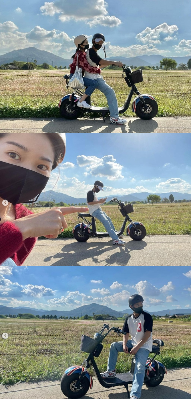 공개된 사진 속 전진, 류이서 부부는 전동 스쿠터를 즐기고 있는 모습이다. 류이서는 전진의 허리를 감은 채 다정함을 나타내고 있다. 전진-류이서 부부 뒤로 아름다운 경관이 시선을 끈다.