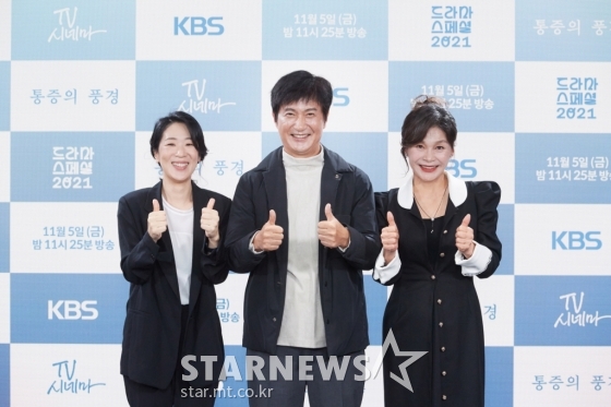연예방송백지원-안내상-길해연 '통증의 풍경, 기대하세요'[★포토]발행 : 2021.11.04 ・ 14:41이동훈 기자배우 백지원, 안내상, 길해연이 4일 오후 온라인 생중계로 진행된 KBS 2TV 단막극 '통증의 풍경' 제작발표회에 참석해 포즈를 취하고 있다.고독사로 위장한 연쇄살인이 발생하는 허름한 동네, 범인의 고해성사를 듣게 된 노신부와 중년의 여형사가 공조하면서 벌어지는 추적 스릴러 '통증의 풍경'은 내일(5일) 방송된다. /사진제공=KBS 2021.11.04<저작권자 © 스타뉴스, 무단전재 및 재배포 금지>통증의풍경추천 기사이동훈 기자기자홈좋아요 연예-방송의 인기 급상승 뉴스연예-방송의 최신 뉴스