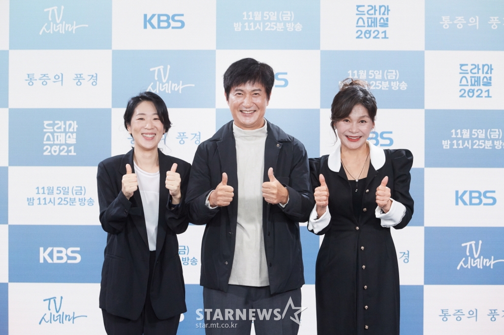 배우 백지원, 안내상, 길해연이 4일 오후 온라인 생중계로 진행된 KBS 2TV 단막극 '통증의 풍경' 제작발표회에 참석해 포즈를 취하고 있다.