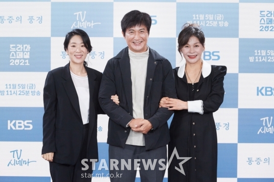 연예방송백지원-안내상-길해연 '포즈는 다정하게'[★포토]발행 : 2021.11.04 ・ 14:41이동훈 기자배우 백지원, 안내상, 길해연이 4일 오후 온라인 생중계로 진행된 KBS 2TV 단막극 '통증의 풍경' 제작발표회에 참석해 포즈를 취하고 있다.고독사로 위장한 연쇄살인이 발생하는 허름한 동네, 범인의 고해성사를 듣게 된 노신부와 중년의 여형사가 공조하면서 벌어지는 추적 스릴러 '통증의 풍경'은 내일(5일) 방송된다. /사진제공=KBS 2021.11.04<저작권자 © 스타뉴스, 무단전재 및 재배포 금지>통증의풍경추천 기사이동훈 기자기자홈좋아요 연예-방송의 인기 급상승 뉴스연예-방송의 최신 뉴스