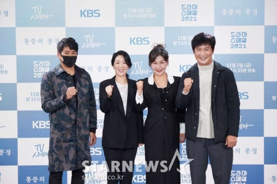 연예방송'통증의 풍경, 화이팅'[★포토]발행 : 2021.11.04 ・ 14:42이동훈 기자임세준 PD, 배우 백지원, 길해연, 안내상이 4일 오후 온라인 생중계로 진행된 KBS 2TV 단막극 '통증의 풍경' 제작발표회에 참석해 포즈를 취하고 있다.고독사로 위장한 연쇄살인이 발생하는 허름한 동네, 범인의 고해성사를 듣게 된 노신부와 중년의 여형사가 공조하면서 벌어지는 추적 스릴러 '통증의 풍경'은 내일(5일) 방송된다. /사진제공=KBS 2021.11.04<저작권자 © 스타뉴스, 무단전재 및 재배포 금지>통증의풍경추천 기사이동훈 기자기자홈좋아요 연예-방송의 인기 급상승 뉴스연예-방송의 최신 뉴스