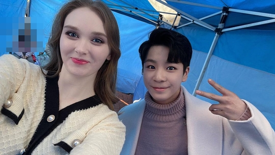 공개된 사진에서 마리아는 정동원과 환한 미소를 짓고 있다. 특히 두 사람은 다정한 모습으로 선남선녀 분위기를 자아내고 있다.