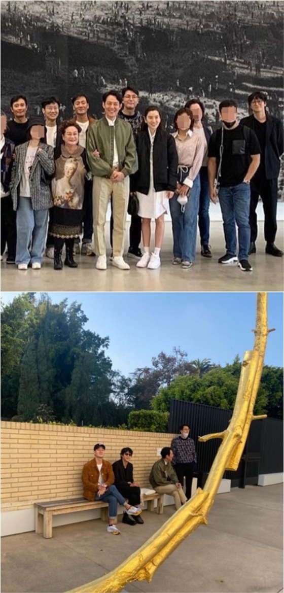 공개된 사진에는 미국 로스앤젤레스에 위치한 마르치아노 미술 재단을 방문한 이정재와 임세령, 그리고 배우 이병헌, 정우성, 강동원, 박해수, CJ 이미경 부회장 등이 참석한 가운데 기념 사진을 촬영한 모습이 담겨 있다.