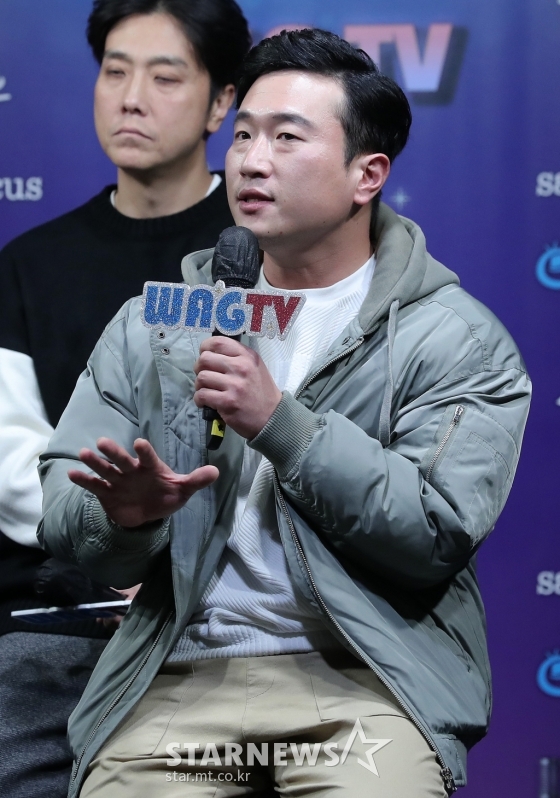 개그맨 홍순목이 18일 오후 서울 마포구 서교동 윤형빈소극장에서 열린 웹 개그 콘첸트 '우리는 개그맨이다' 제작발표회에 참석해 인사말을 하고 있다.