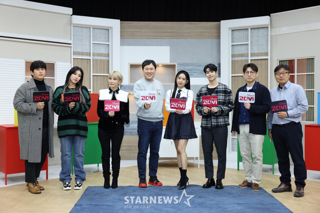 MC 유정승(왼쪽부터), 가수 자이언트핑크, 브라운아이드걸스 제아, 개그맨 김용명, 방송인 한초임, 아스트로 MJ, 조성화, 김은수 총괄 PD가 24일 오후 온라인으로 진행된 동아TV 새 예능프로그램 '고디바 SHOW' 제작발표회에 참석해 포즈를 취하고 있다.