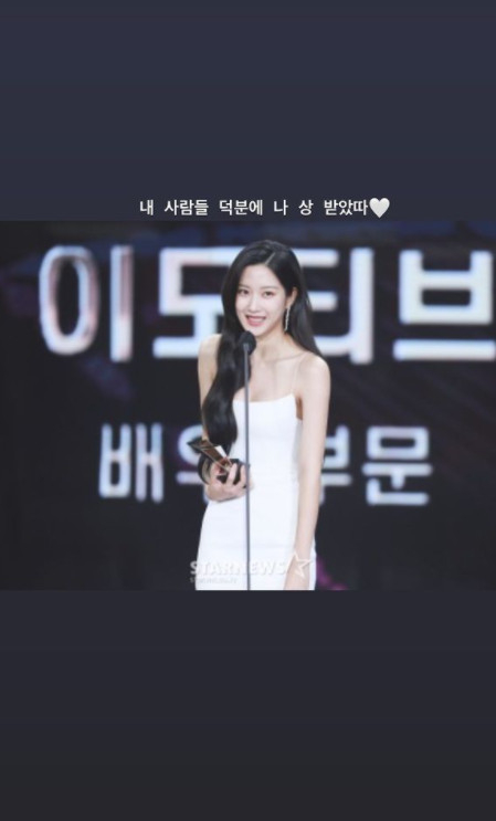 문가영은 지난 2일 자신의 인스타그램 스토리에 "내 사람들 덕분에 나 상 받았다"란 글을 게재했다.
