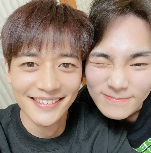 공개된 사진 속에는 키와 민호가 서로 얼굴을 맞닿은 채 미소를 짓고 있다.