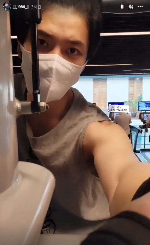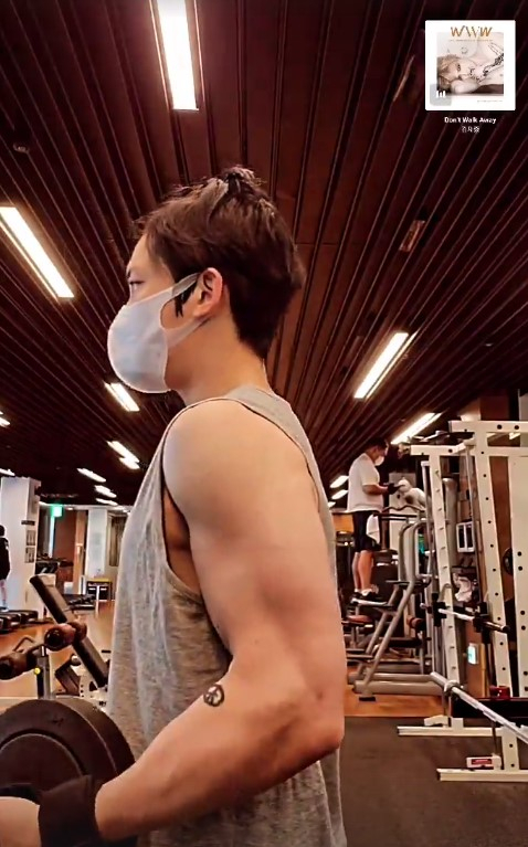 사진과 영상 속에는 김재중이 헬스장에서 회색 나시티를 입고 덤벨을 들고 있는 모습이 담겨있다. 또한 김재중은 마스크를 낀 채 카메라 화면을 주시하고 있다.