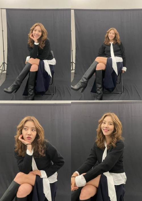 사진 속에는 손담비가 블랙 니트에 롱부츠를 신고 크로마키 앞에서 자연스러운 포즈를 취하고 있다. 특히 손담비의 길게 뻗은 다리와 날렵한 이목구비가 눈에 띈다.
