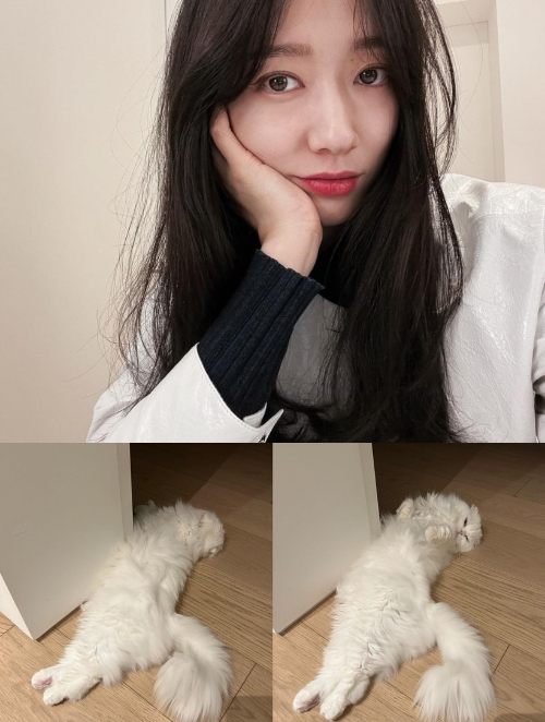 공개된 사진 속에는 박신혜의 반려묘인 하얀 페르시안이 바닥에 누운 채 카메라를 응시하고 있다.