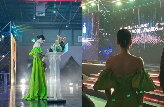 공개된 사진 속에는 손나은이 연두색 오프숄더 드레스를 입고 포즈를 취하고 있다. 손나은은 최근 아시아 모델 어워즈에 참석한 바 있다.