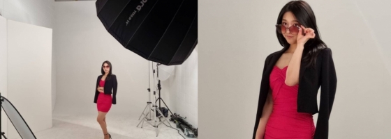 공개된 사진 속에는 이혜성이 스튜디오에서 조명을 받으며 포즈를 취하고 있다. 이혜성은 빨강 원피스에 오각형 선글라스를 끼고 있다.