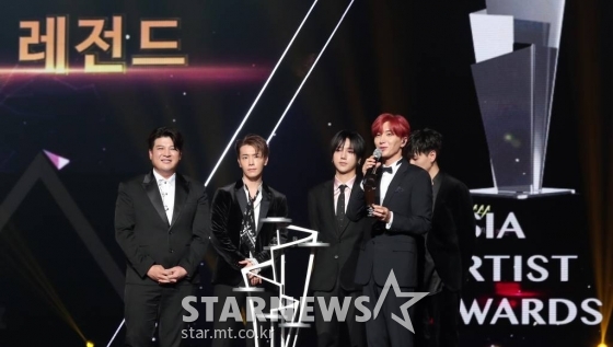그룹 슈퍼주니어가 '2017 AAA(Asia Artist Awards)'에서 레전드상을 수상한 뒤 소감을 말하고 있다. 아시아를 빛낸 최고의 아티스트들이 최고의 무대에서 함께 즐기는 'No.1' 시상식 'AAA'는 글로벌 엔터테인먼트 미디어 스타뉴스(STARNEWS)가 주최하며 Asia Artist Awards 조직위원회의 주관으로 열렸다. /사진=김창현 기자 chmt@