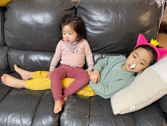 이에 네티즌들은 "천갈이 가능해요. 생활의 달인에 나왔어요. 다만 천갈이가 소파값만큼 나온대요","그 와중에 독특한 핑크퐁 머리띠","소울이 언니 다리에 앉아있네요~ 히히 자매가 사이좋네요"라는 등의 댓글을 남겼다.