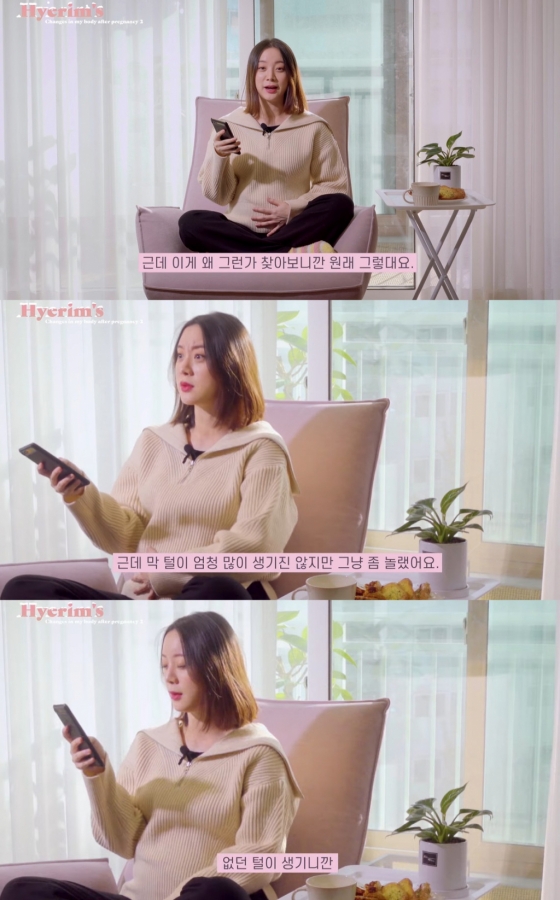 혜림은 지난 24일 자신의 유튜브 채널 'Lim's diary 우혜림'을 통해 "원더걸스 혜림의 임신 후 달라지는 신체 변화들? 두 번째 이야기"란 제목의 영상을 공개했다.