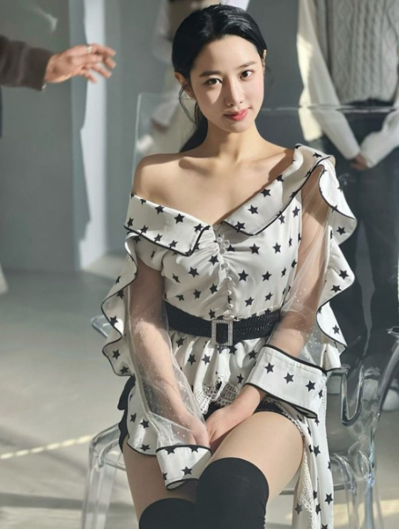 공개된 사진 속에는 조현이 한쪽 어깨선을 드러낸 채 카메라를 응시하고 있다.