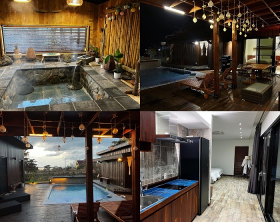 공개된 사진 속에는 야외수영장이 딸린 풀빌라와 실내에는 온천의 모습이 담겼다.