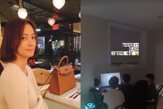 4일 손태영은 자신의 인스타그램 스토리를 통해 "아지트?? 두 시간 그들만의 세상"이라는 문구와 함께 사진 한 장을 게재했다.
