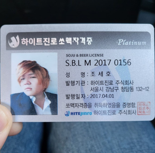 공개된 사진에는 한 주류 업체에서 발급한 조세호의 '쏘맥 자격증'이 담겨 있다. 이에 하하는 "푸하하하하하하"라는 댓글을 남겼다. 지금과 사뭇 다른 분위기의 증명사진 또한 웃음을 자아낸다.