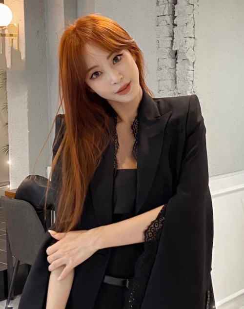 공개된 사진 속 한예슬은 오렌지색으로 바뀐 긴 머리를 늘어뜨린 채 카메라를 응시하고 있다.