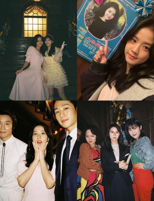 공개된 사진속 지수는 동료 배우 최희진과 복고풍 드레스를 입고 미소를 띠고 있다. 다른 사진에는 허남준, 정해인, 김혜윤, 윤세아 등 동료 배우들과 함께 JTBC 드라마 '설강화' 촬영 현장에서 포즈를 취하고 있다.