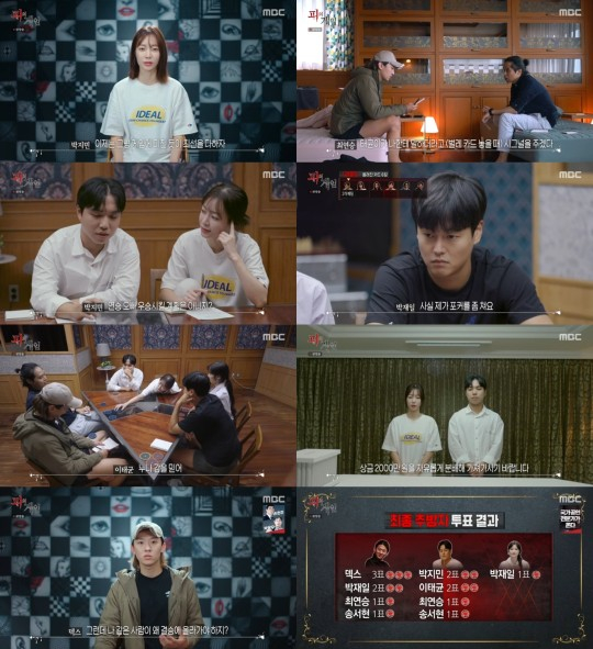 '피의 게임'은 10명의 출연자 UDT 출신 덱스, MBC 아나운서 박지민, 여행 유튜버 박재일, 서울대 출신 모델 송서현, 미대생 이나영, 경찰 이태균, 야구선수 출신 정근우, 한의사 최연승, 가수 퀸 와사비, 연세대 의대생 허준영이 지상층, 지하층으로 나뉜 양극의 환경과 음모와 배신, 거짓, 모략이 허락된 상황에서 상금 1억을 걸고 두뇌와 정치 게임을 했다. 박지민, 송서현, 이태균, 최연승이 4인 파이널에 올랐고, 이태균이 최연승과의 대결에서 승리해 최후의 1인으로 총 상금 1억 800만 원을 획득했다.