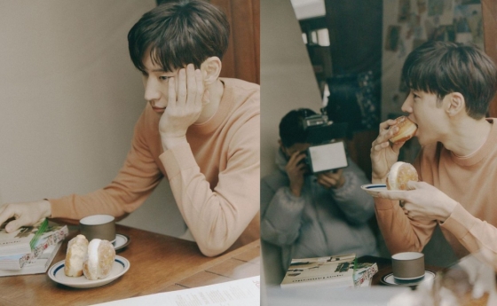 공개된 사진 속 이제훈은 턱을 괴고 앉아 사색에 잠긴 모습이다. 다른 사진에는 도넛을 살짝 베어 물고 있다.