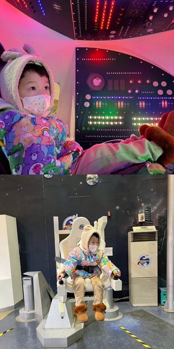 공개된 사진 속에는 최민환-율희 부부의 첫째 아들 최재율 군의 모습이 담겨 있다. 놀이기구를 타고 행복해하는 모습이 보는 이로 하여금 미소가 지어지게 한다.