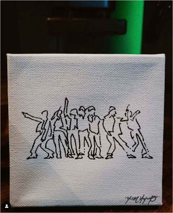 그룹 방탄소년단의 멤버 RM이 멤버들의 실루엣이 담긴 드로잉을 공개했다.