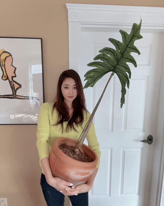공개된 사진에는 김사랑이 알로카시아 재클린이 있는 화분을 들고 있다. 특히, 김사랑의 모습이 눈길을 끈다. 작은 얼굴에 날씬한 몸매로 화분에 심어도 될 듯하다.