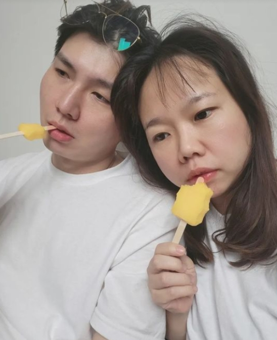 공개된 사진 속 홍현희, 제이쓴 부부는 나란히 아이스크림을 먹으며 멍하니 어딘가를 바라보고 있다.