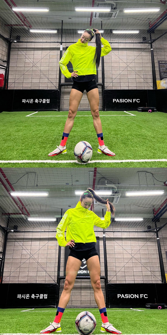 공개된 사진 속 최여진은 실내 풋살장에서 운동복을 입고 있으며 긴 기럭지와 함께 축구로 다져진 허벅지, 다리 근육을 자랑하고 있다. 최여진의 건강미 넘치는 모습이 시선을 사로잡는다.