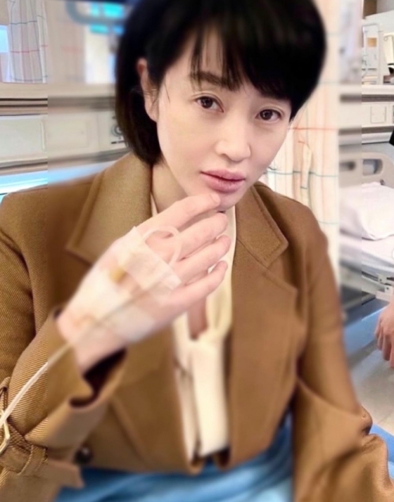 배우 김혜수가 링거를 꽂은 모습으로 팬들의 가슴을 쓸어내리게 했다.