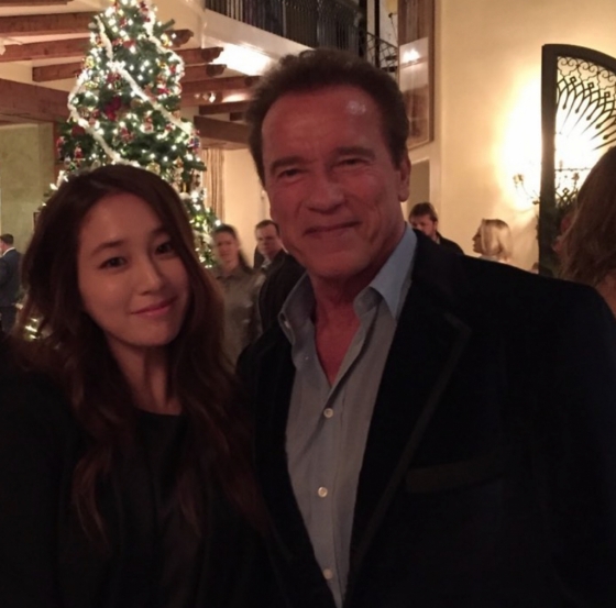 배우 이민정이 할리우드 톱스타 아놀드 슈왈제네거와 함께 찍은 사진을 공개했다.